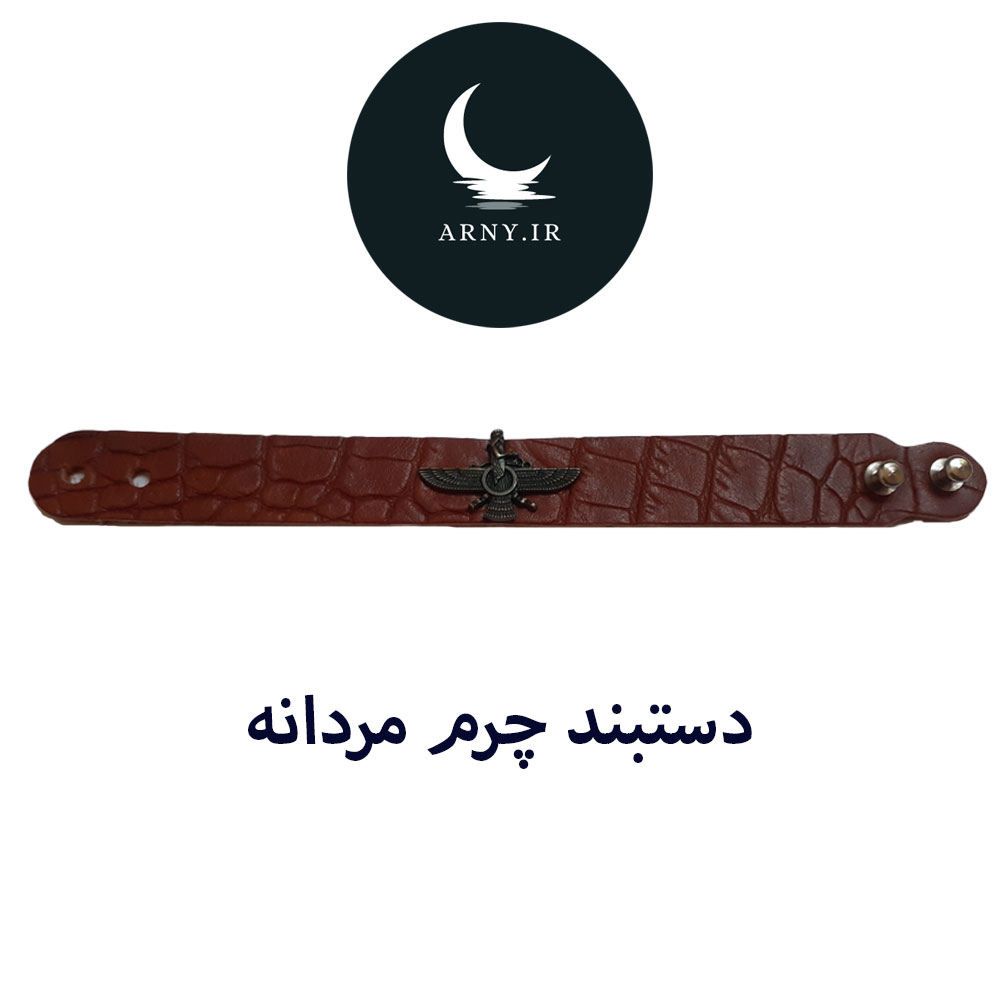 دستبند چرم مردانه در رنگ و طرح و آرم های متفاوت موجود است.