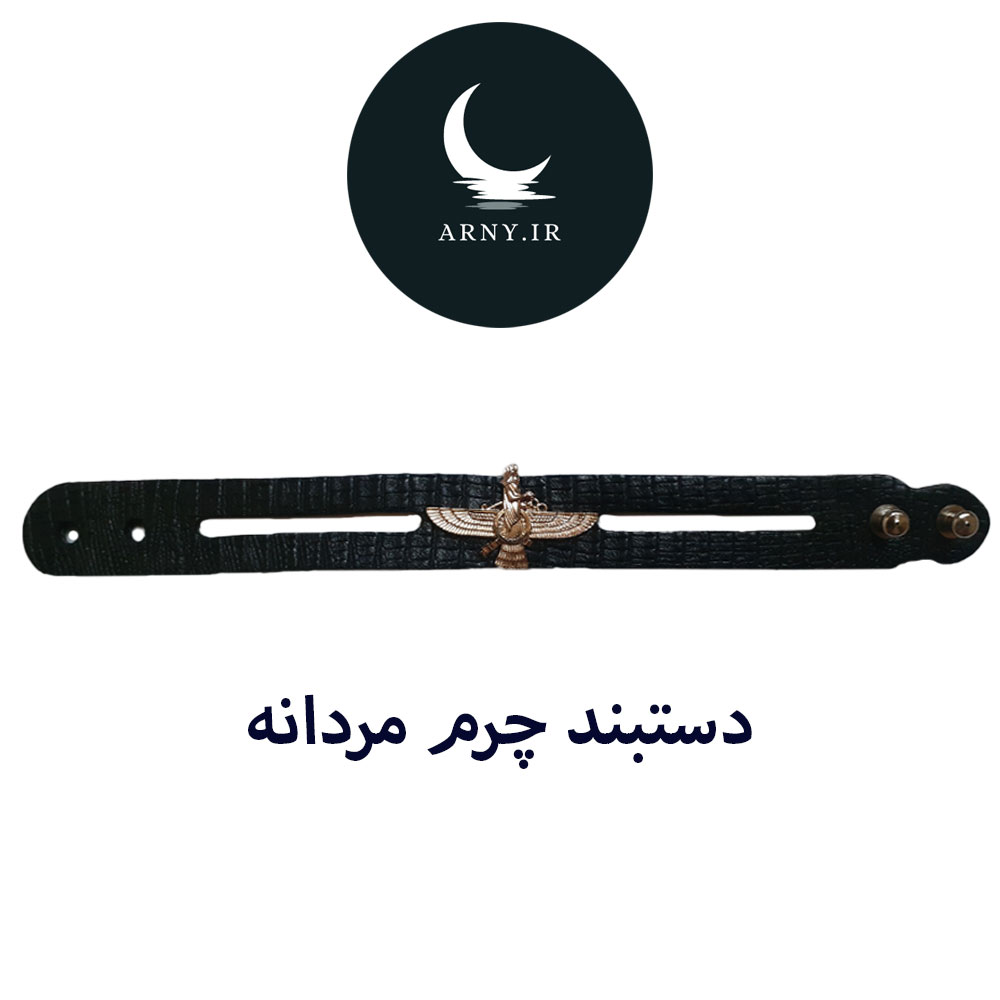 دستبند چرم مشکی مردانه با آرم فَروَهَر طلایی در دو لایه چسبیده به هم چرم و اشبالت تولید شده است. این دستبند با کیفیت ترین نوع دستبند مردانه موجود از نظر جذاب بون و قدرت مردانه است که در بازار موجود است.