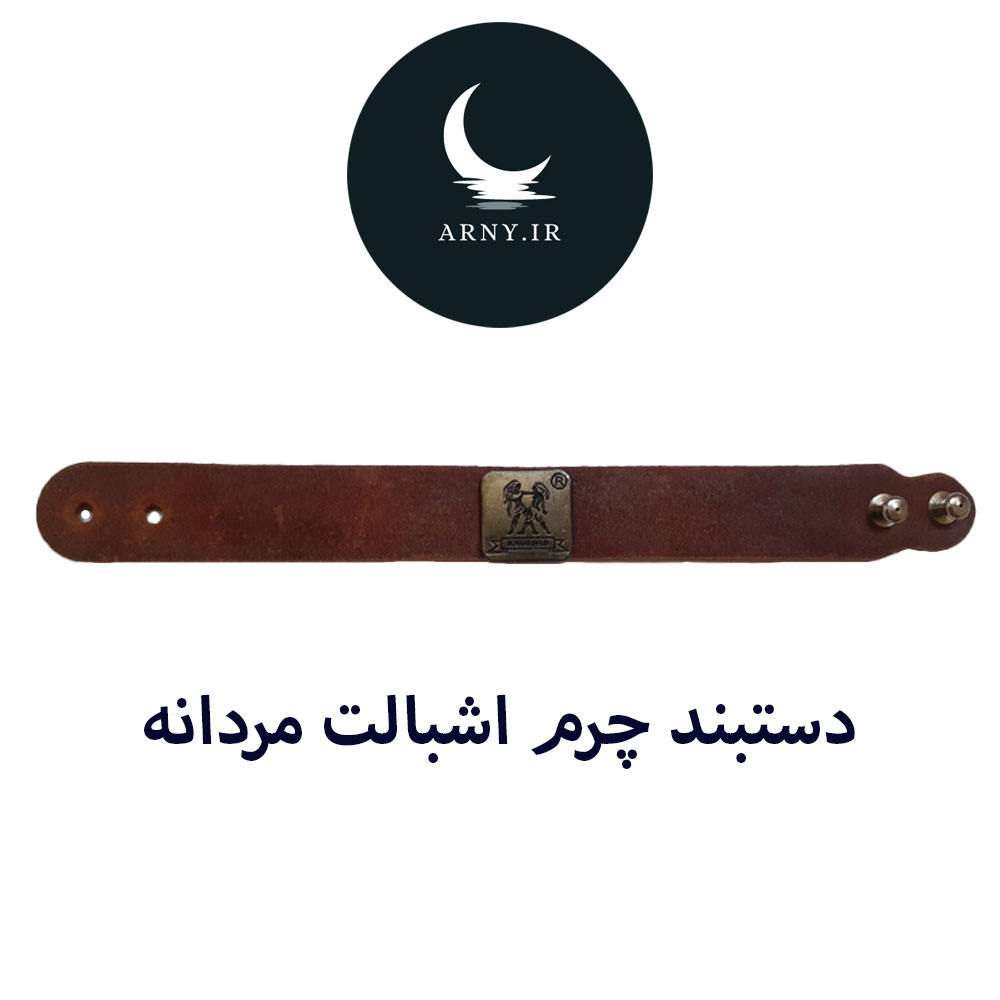 دستبند چرم مردانه در رنگ و طرح و آرم های متفاوت موجود است.